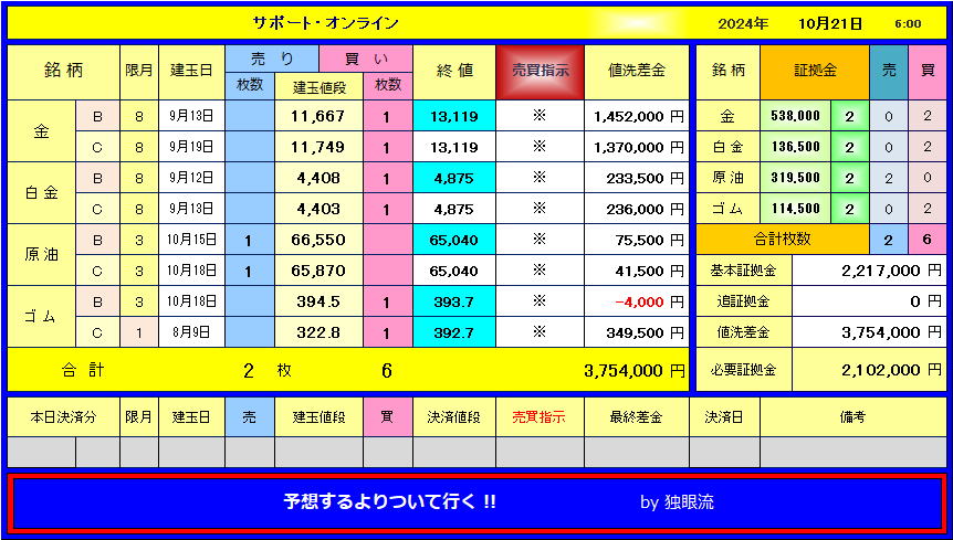 チャートや取組高を使用した相場情報を定期的に更新しております。