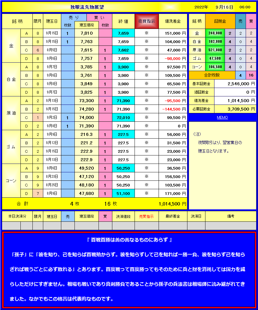 独眼流先物展望 本日の変動データ - Part 210 | 独眼流先物展望 本日の変動データ