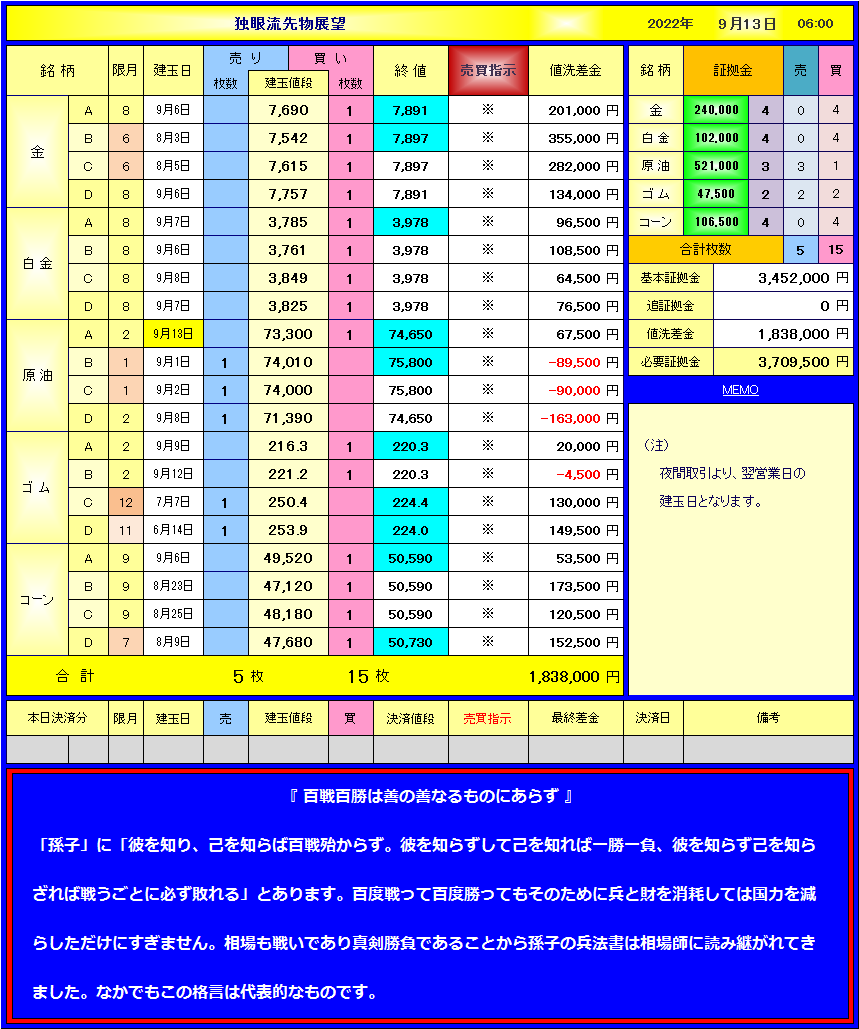 独眼流先物展望 本日の変動データ - Part 211 | 独眼流先物展望 本日の変動データ