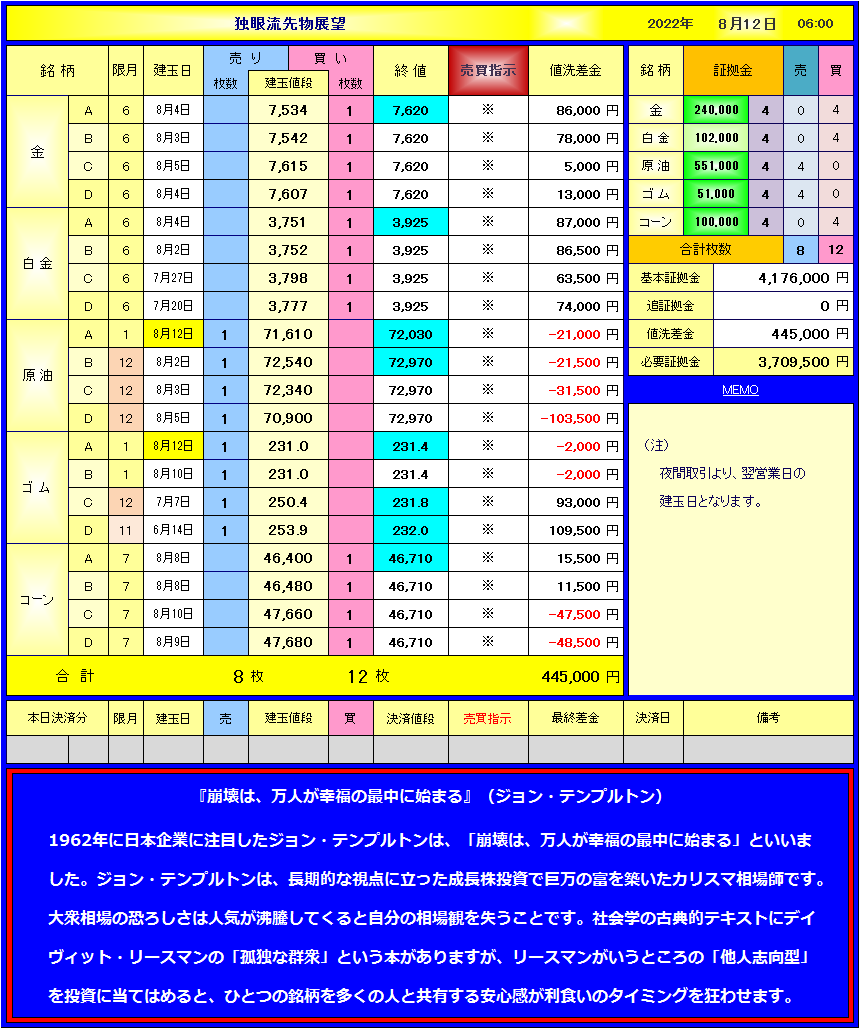独眼流先物展望 本日の変動データ - Part 220 | 独眼流先物展望 本日の変動データ