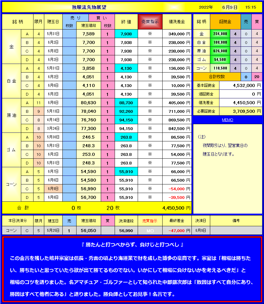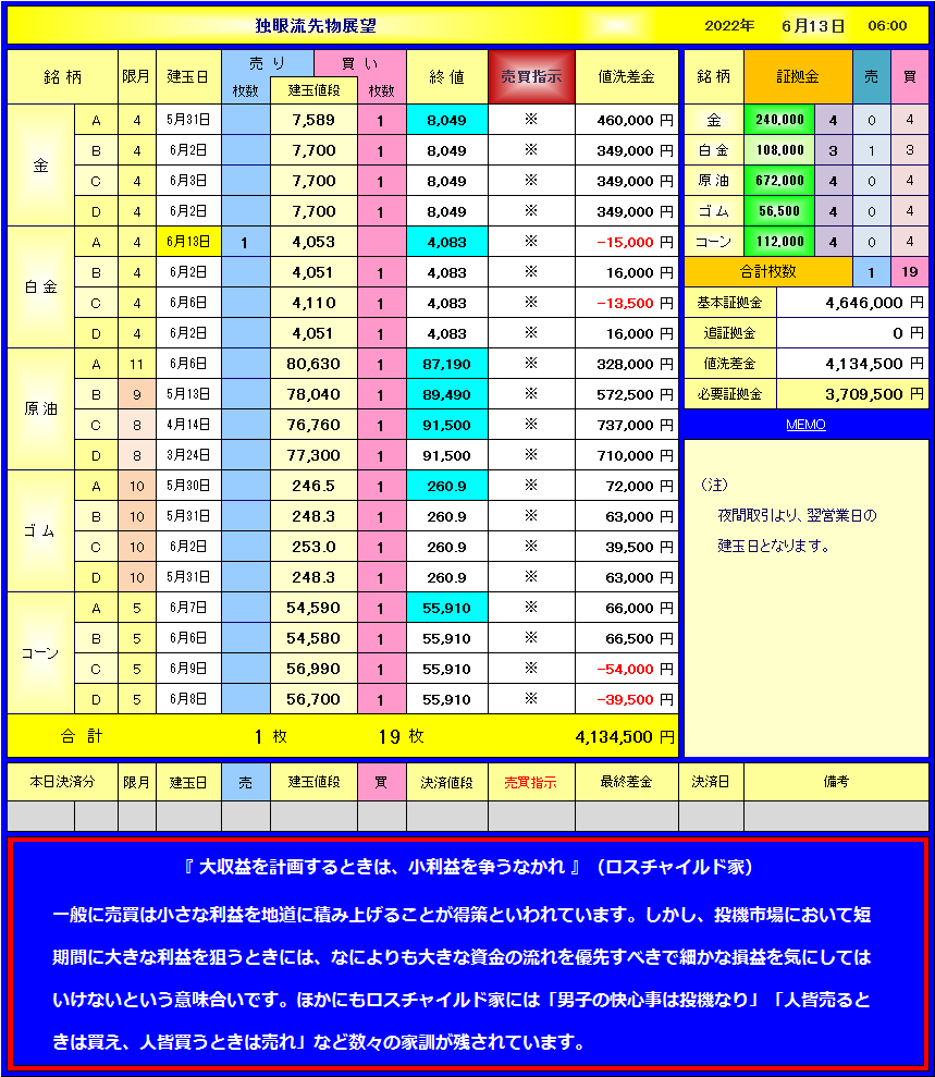 独眼流先物展望 本日の変動データ - Part 237 | 独眼流先物展望 本日の変動データ