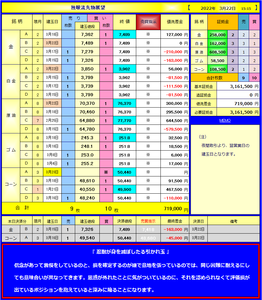 独眼流先物展望 本日の変動データ - Part 259 | 独眼流先物展望 本日の変動データ