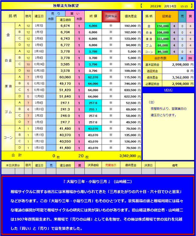 独眼流先物展望 本日の変動データ - Part 268 | 独眼流先物展望 本日の変動データ