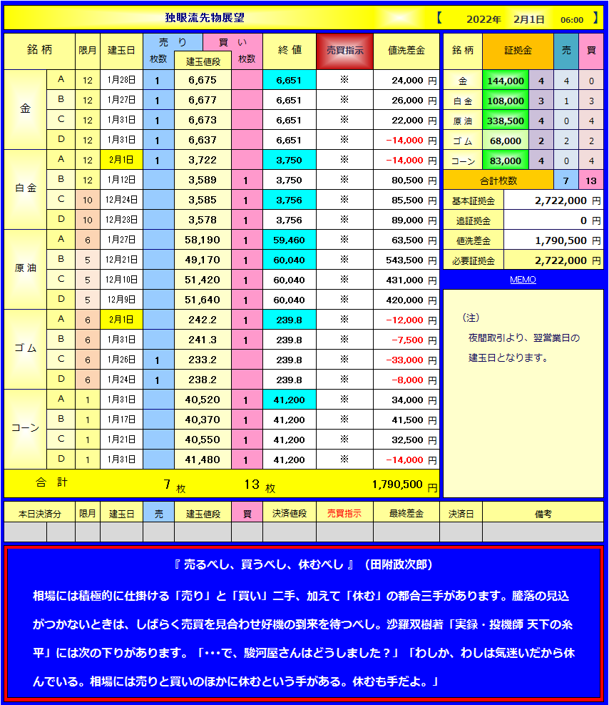 独眼流先物展望 本日の変動データ - Part 272 | 独眼流先物展望 本日の変動データ
