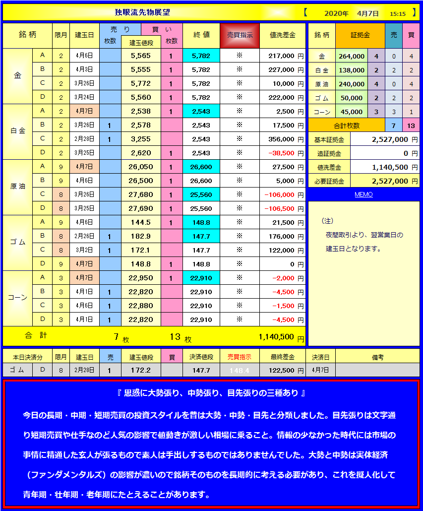 独眼流先物展望 本日の変動データ - Part 449 | 独眼流先物展望 本日の変動データ