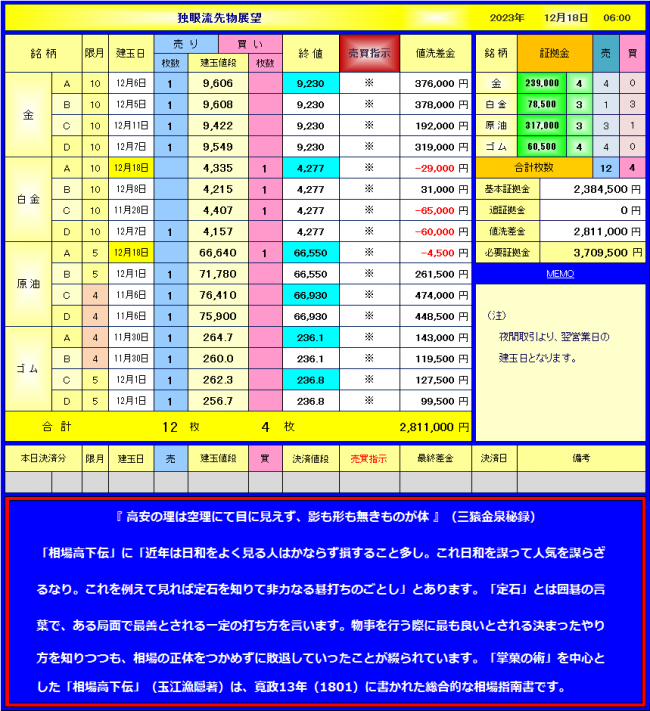 独眼流先物展望 本日の変動データ - Part 87 | 独眼流先物展望 本日の変動データ
