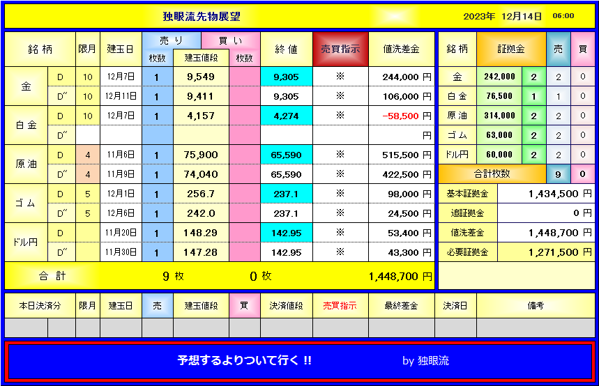 独眼流先物展望 本日の変動データ - Part 88 | 独眼流先物展望 本日の変動データ